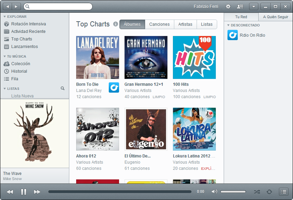 La versión para Escritorio de Rdio permite crear y reproducir listas sin tener abierto el navegador, descargar canciones en formato MP3 (previa compra) y leer la biblioteca de iTunes y Windows Media Player para igualar listas con Rdio.